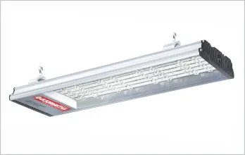Для освещения крупных производственных цехов с высокими потолками применяются светильники GSSNO с линзованной оптикой диаграммой светораспределения 65º и с "широкой" диаграммой светораспределения 160º х 60º.